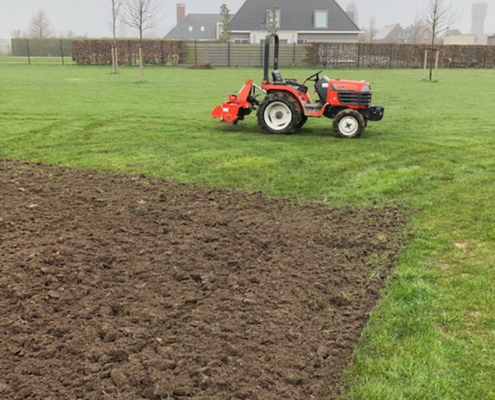 Wij beschikken over een smalspoor tractor. Welke wij kunnen inzetten om uw tuin te frezen.